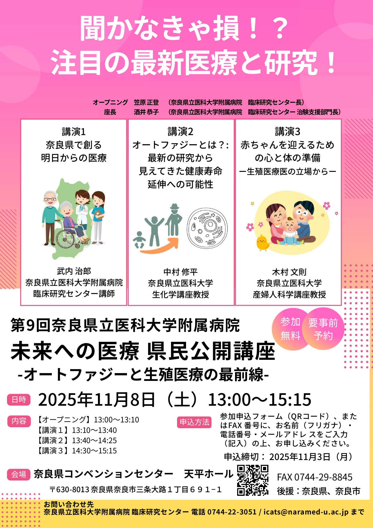第9回 奈良県立医科大学附属病院 未来への医療 県民公開講座 ― オートファジーと生殖医療の最前線 ―